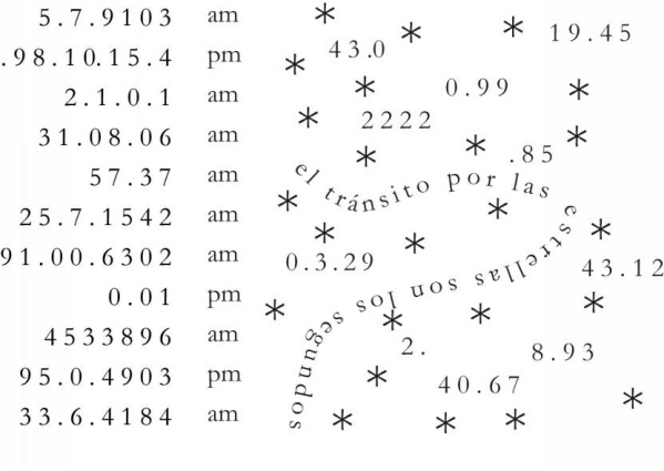 En el imaginario, el lector tradicional aún no entiende que 01100001 01101101 01101111 01110010 en el lenguaje de las máquinas quiere decir AMOR. Lo que hacen estas obras, y de nuevo, en un lugar de primer orden, la obra de Yaxkin Melchy, no es educar sino inventar a su lector futuro. — Javier Raya